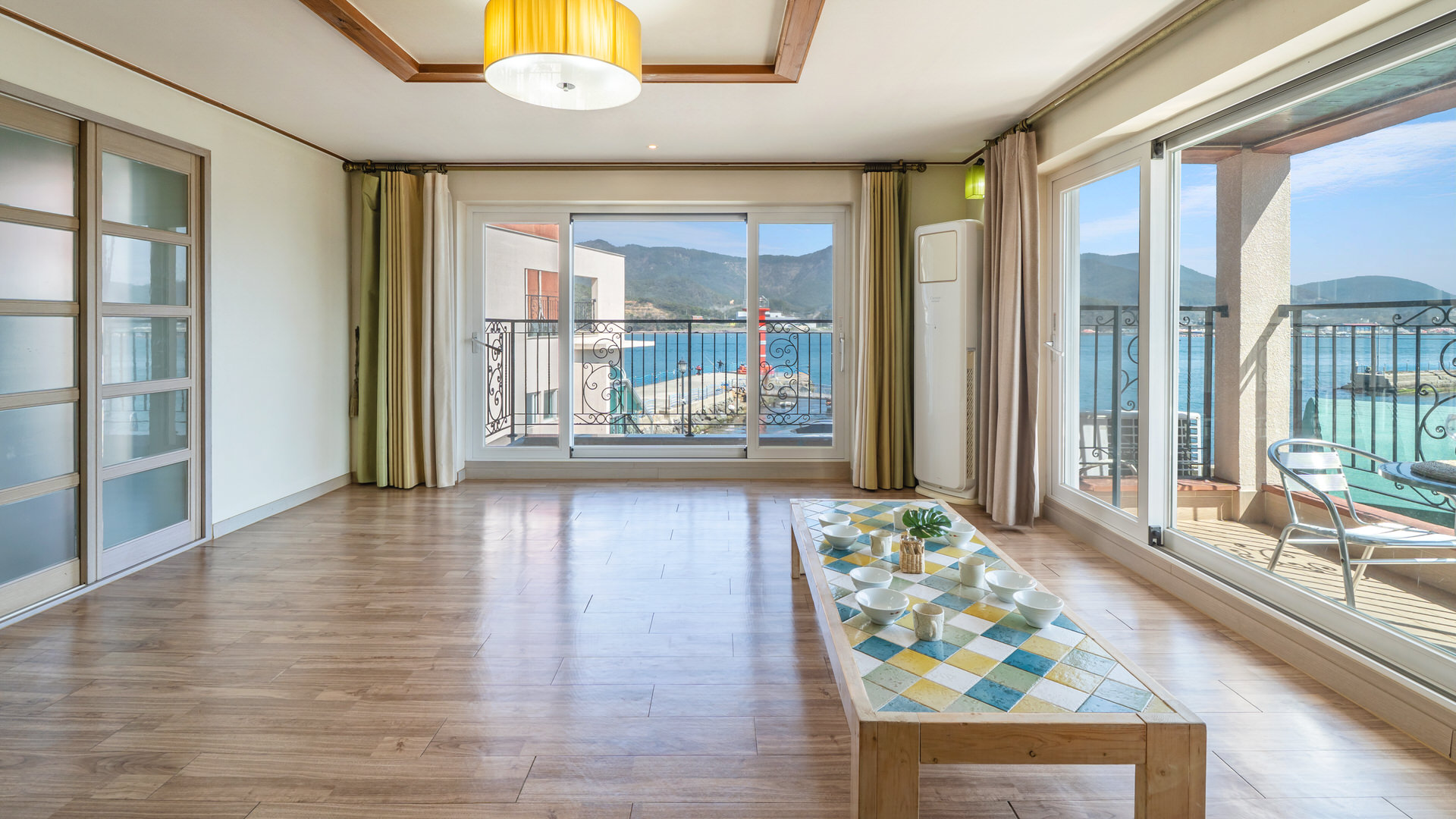 - 집기품목 : TV, 냉장고, 에어컨, 전기밥솥, 취사시설/도구, 커피포트, 가스레인지, 욕실용품, 타월, 드라이기, 테라스, 남녀공용, 금연, 와이파이, 바다전망